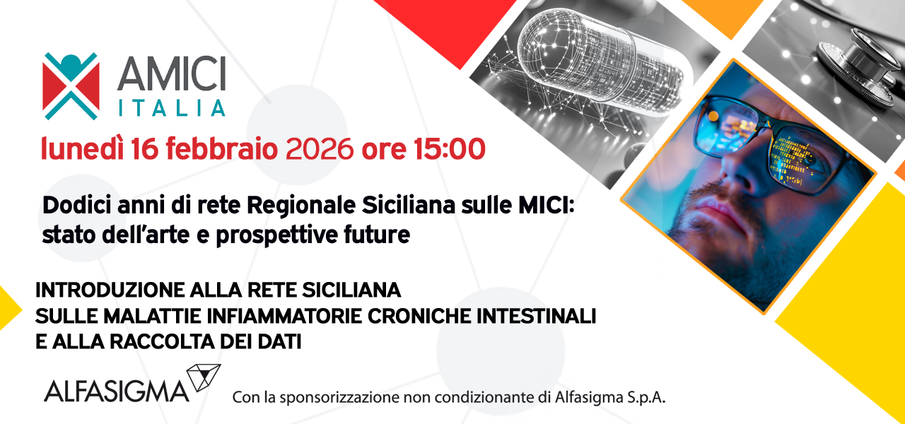 Lunedì 16 febbraio 2026, alle ore 15:00, AMICI Italia promuove un importante momento di confronto dedicato alla Rete Regionale Siciliana per le Malattie Infiammatorie Croniche Intestinali (MICI), a dodici anni dalla sua attivazione.