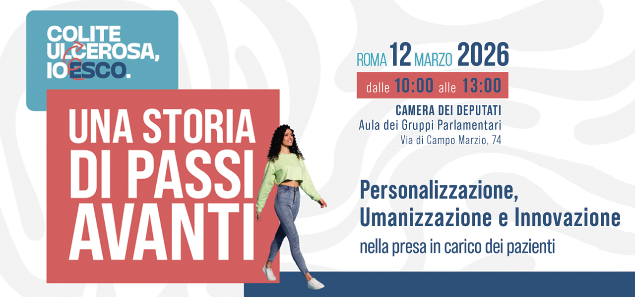 Il 12 marzo 2026, dalle 10:00 alle 13:00, si terrà a Roma presso la Camera dei Deputati – Aula dei Gruppi Parlamentari l’evento “Una storia di passi avanti. Personalizzazione, Umanizzazione e Innovazione nella presa in carico dei pazienti”, promosso nell’ambito della campagna Colite Ulcerosa, Io Esco.