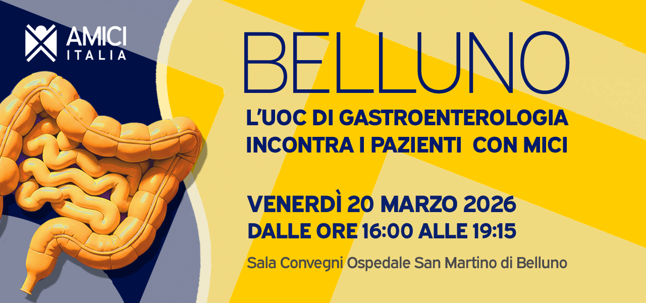 Venerdì 20 marzo 2026, dalle ore 16:00 alle 19:15, presso la Sala Convegni dell’Ospedale San Martino di Belluno, si terrà un importante incontro dedicato alle persone con Malattie Infiammatorie Croniche Intestinali e ai loro familiari.