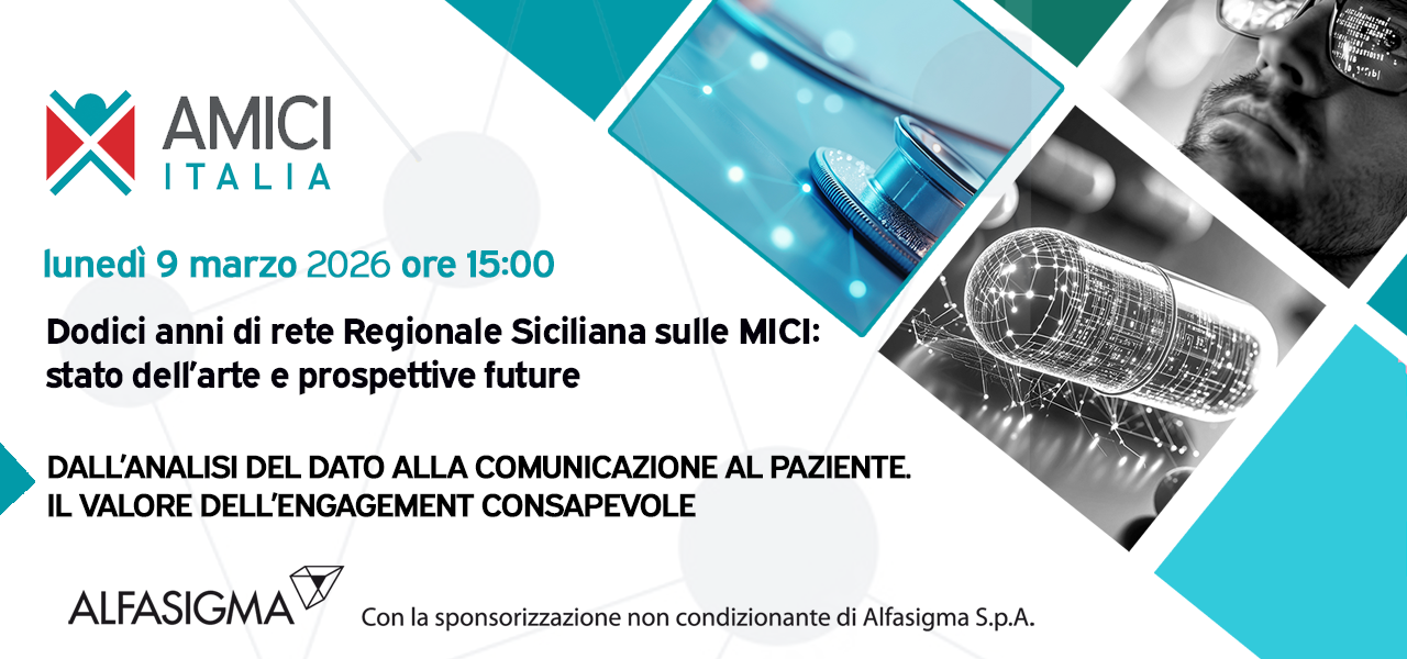 Lunedì 9 marzo 2026 alle ore 15:00 si terrà il terzo momento di confronto dedicato alle Malattie Infiammatorie Croniche Intestinali e al percorso compiuto dalla Rete Regionale Siciliana negli ultimi dodici anni. L’iniziativa, promossa con il contributo non condizionante di Alfasigma, rappresenta un’occasione per analizzare i risultati raggiunti, discutere le sfide ancora aperte e delineare le prospettive future per migliorare la presa in carico delle persone con MICI