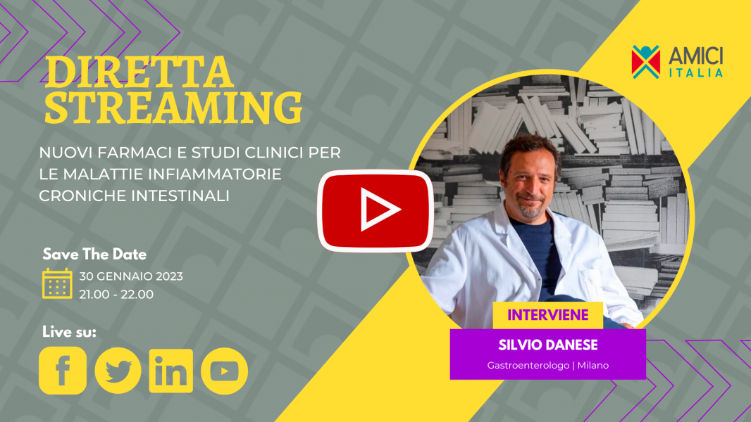 Pubblichiamo la registrazione del webinar “Nuovi farmaci e studi clinici per le Malattie Infiammatorie Croniche Intestinali” con il Prof. Silvio Danese, IRCCS Ospedale San Raffaele Milano