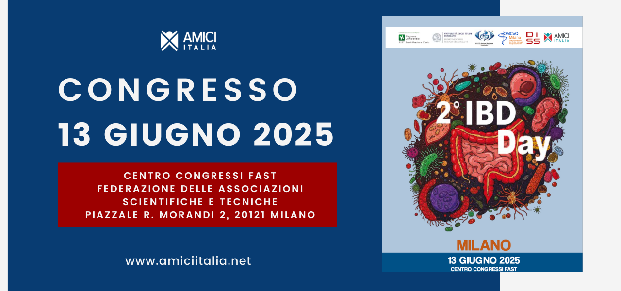 Il 13 giugno 2025 si svolgerà a Milano, presso il Centro Congressi FAST, il congresso “2° IBD DAY”, un appuntamento dedicato alle Malattie Infiammatorie Croniche Intestinali
